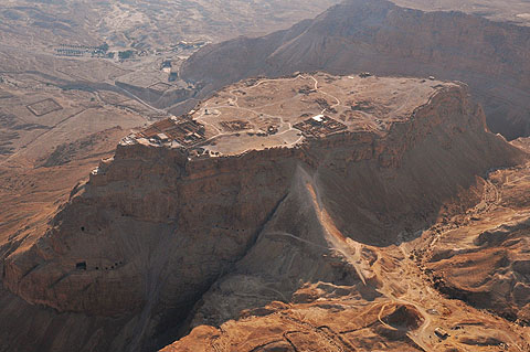 Masada (meaning ‘fortress’ in Hebrew) became known for its attributed mythic significance in the First Jewish-Roman War (also known as the Great Jewish Revolt). In the first century A.D. nearly a thousand Jewish rebels who believed in zero-tolerance toward the Roman rule took over the fortress and were surrounded by the Roman army, which left behind the most complete siege works in the world. When defeat appeared imminent, the rebels chose to commit suicide instead of giving in and spending the rest of their lives as slaves. This made Mesada a symbol of the human spirit’s yearning for freedom.