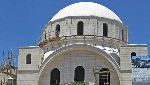 After 140 years, during Turkish rule, the decree against Ashkenazi Jews was reversed and construction of the synagogue was renewed, funded by Moses Montefiore and Baron Alphonse, a brother of Baron Edmond Benjamin James de Rothschild. The structure of the splendid synagogue was planned in the neo-Byzantine style, which characterized many houses of worship throughout the Ottoman Empire and included four square towers with four 16-meters arches between them. Over the arches rose a large, spectacular dome. The synagogue became a spiritual center in Jerusalem’s Old City, until the 1948 War of Independence. During the war, the synagogue was bombed, the structure collapsed and was destroyed, and only two pillars remained standing. After the 1967 Six Day War, as part of renovation activities in the Jewish Quarter, wide-spread construction work commenced, alongside archaeological digs in which artifacts from different eras were discovered, including: Mikvehs (ritual baths) from the time of the Second Temple and a street from the Byzantine Period, which are displayed in the synagogue basement. The synagogue was inaugurated and reopened on March 15, 2010.